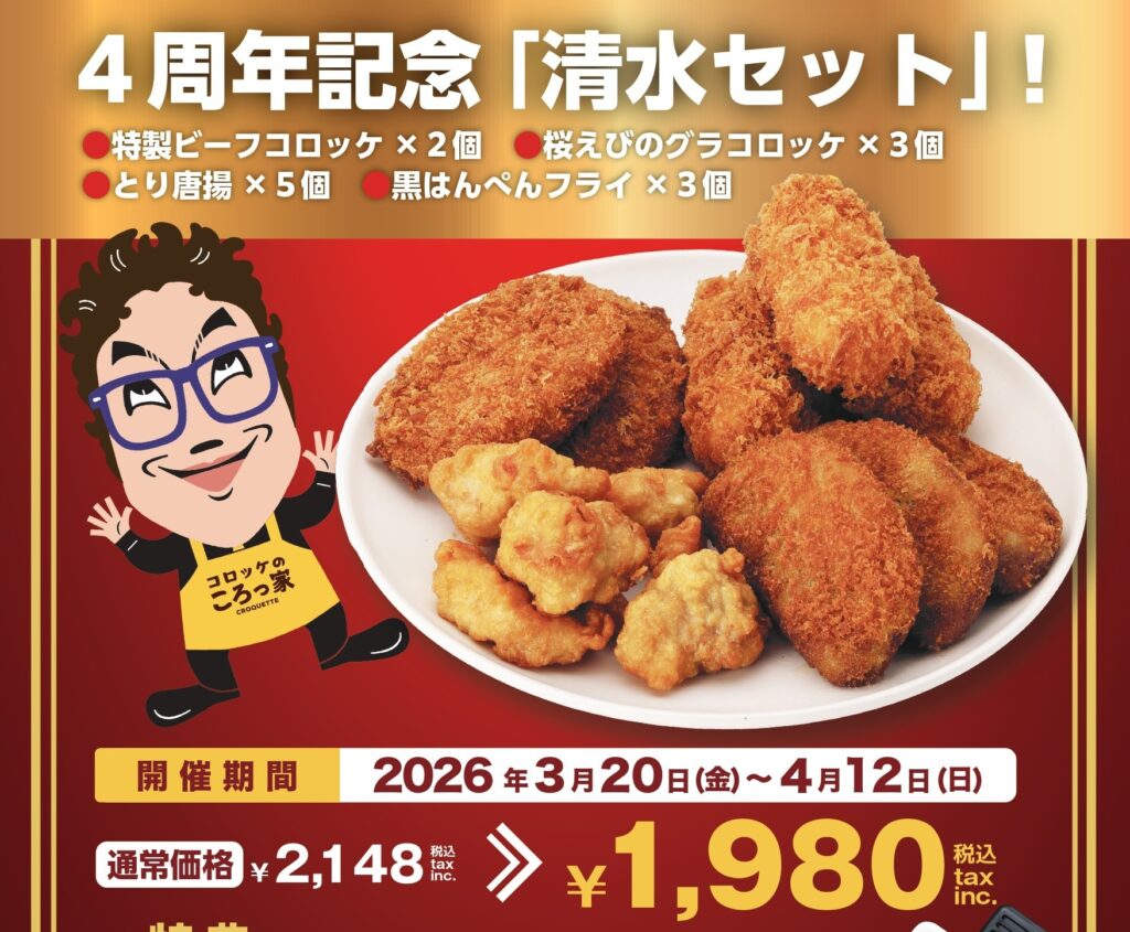 祝4周記念「清水セット」販売!3月20日~4月12日 コロッケのころっ家清水店限定!