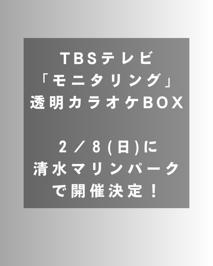 TBSテレビ「モニタリング」透明カラオケBOX 2/8(日)に清水マリンパークで開催決定!