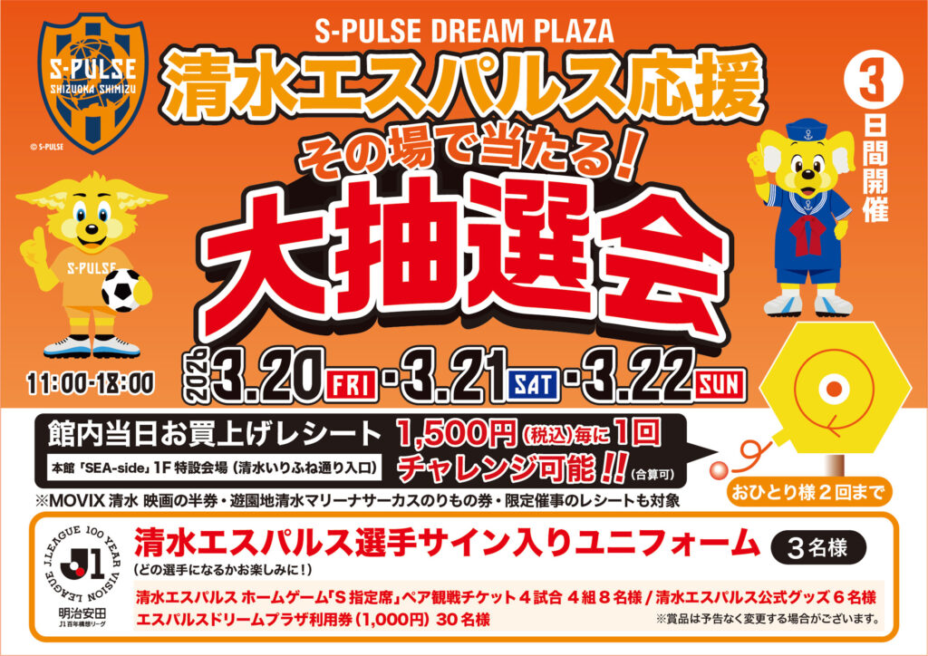【3月20日・21日・22日開催】清水エスパルス応援!大抽選会
