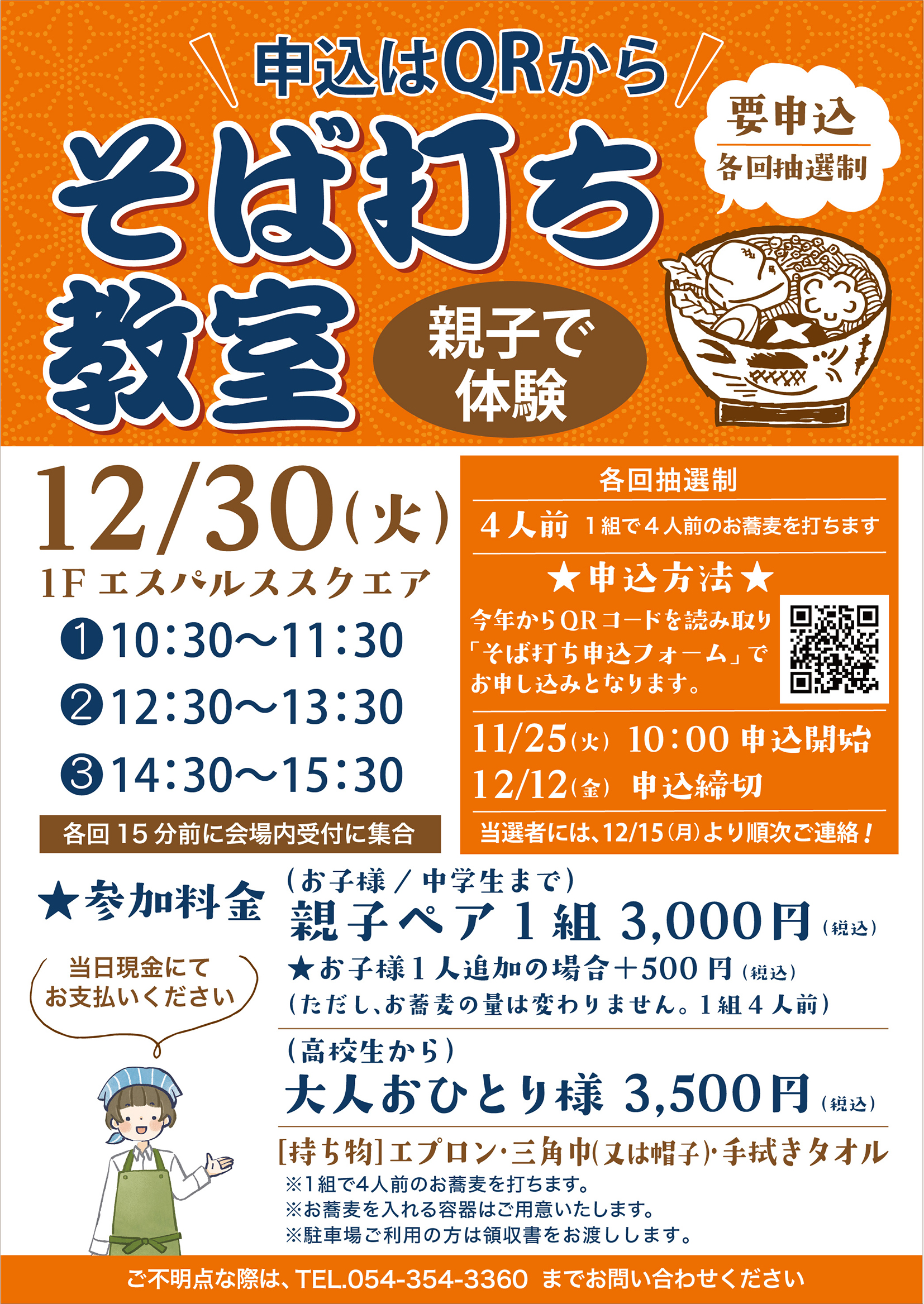 (”そば打ち教室のお申込みで”とお伝えいただけますと幸いです。)