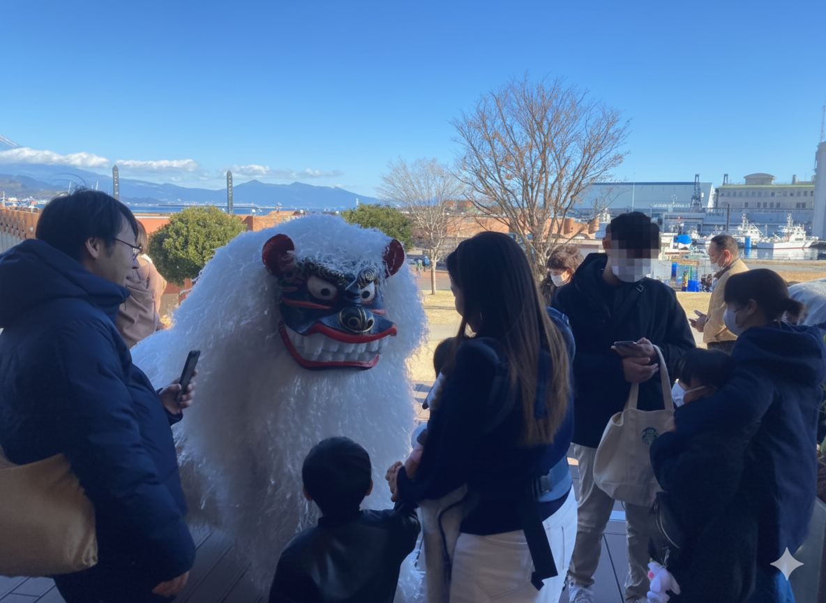 獅子舞に噛まれると、無病息災のご利益があると言われています。