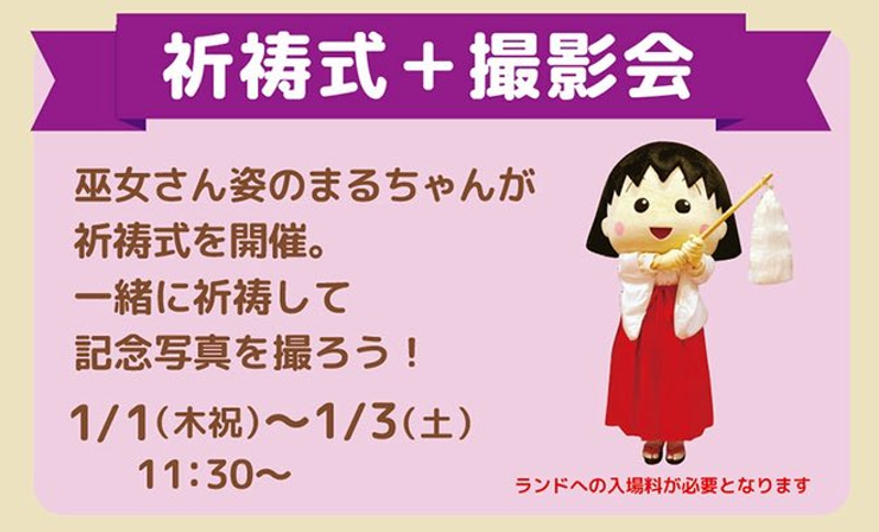 1日~3日には、巫女さん姿のまるちゃんの祈祷式を開催します!