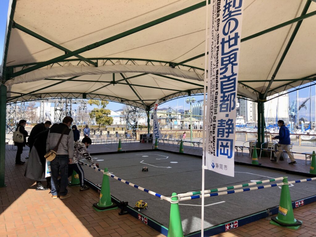 プラモデルの販売・展示の他、RCラジコンカーの走行体験や
