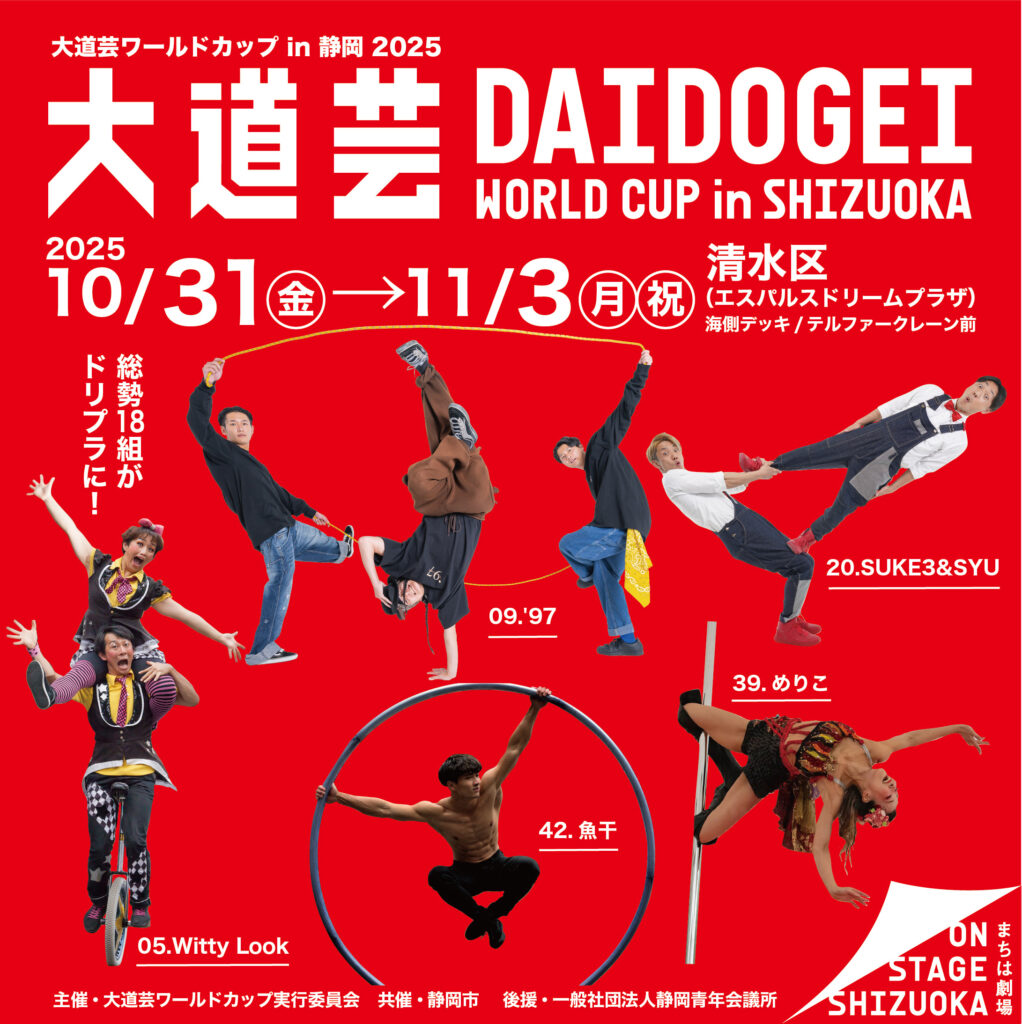 【10月31日~11月3日開催】大道芸ワールドカップin静岡/清水区サテライト SHARE 今年の大道芸ワールドカップは、10月31日~11月3日にて開催🤡🎶今年は、海側デッキとテルファークレーン前の2か所にポイントを設置!! 【スケジュール・出演者一覧 順次公開予定】 豪華出演者によるパフォーマンスをお楽しみに! SHARE