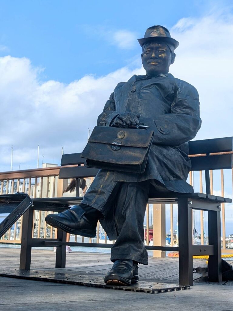 本物の彫刻みたいなふとっちょおじさん。愛嬌のある動作と造形が特徴。写真撮影にも対