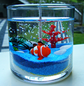 【ジェルキャンドル】![]() ガラス器にカラーサンドとガラス小物を入れて、ジェルを注いだキャンドルを作ります。 料金:グラス 830円とガラス小物440円×個数 ※作品は約1時間後のお渡しです。 |