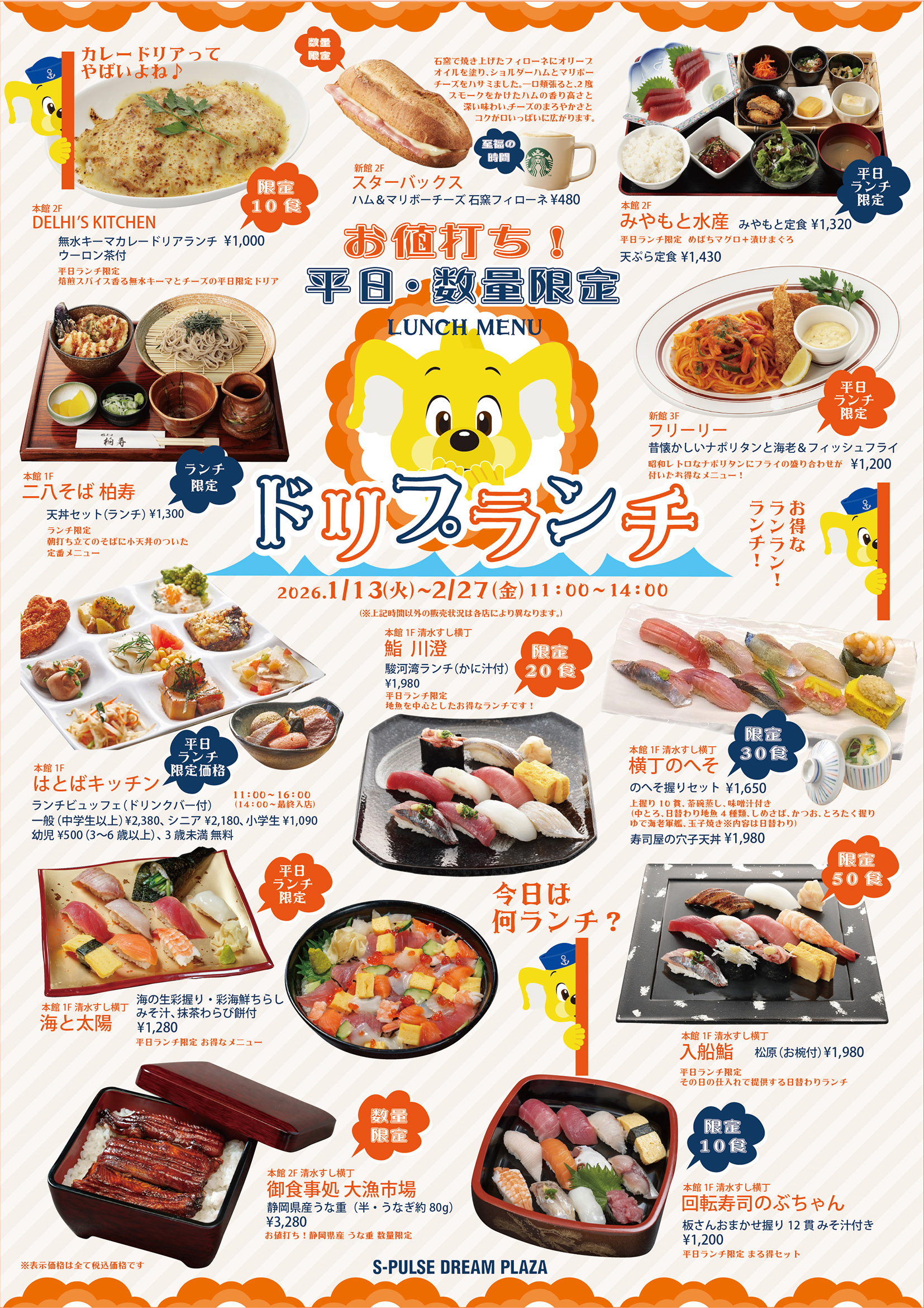 エスパルスドリームプラザでは、期間限定で“お得な平日ランチ”を実施中!