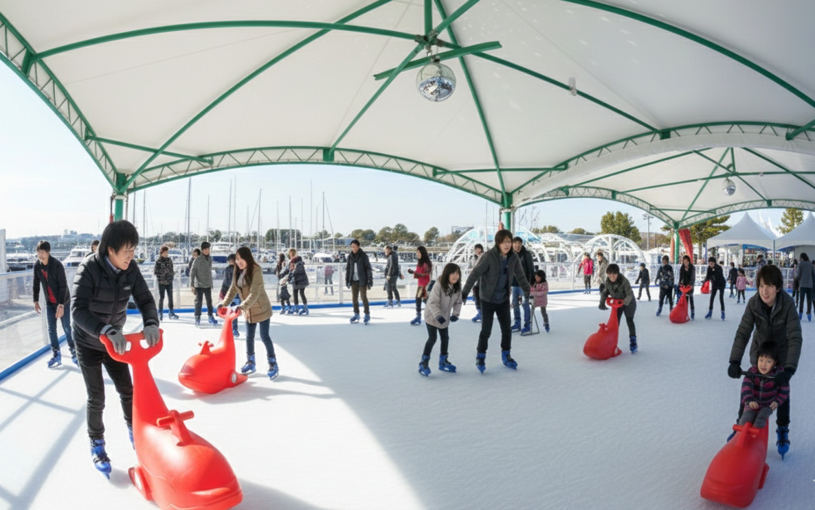 スケートリンクの面積:長さ約20m×幅約10mとなります。