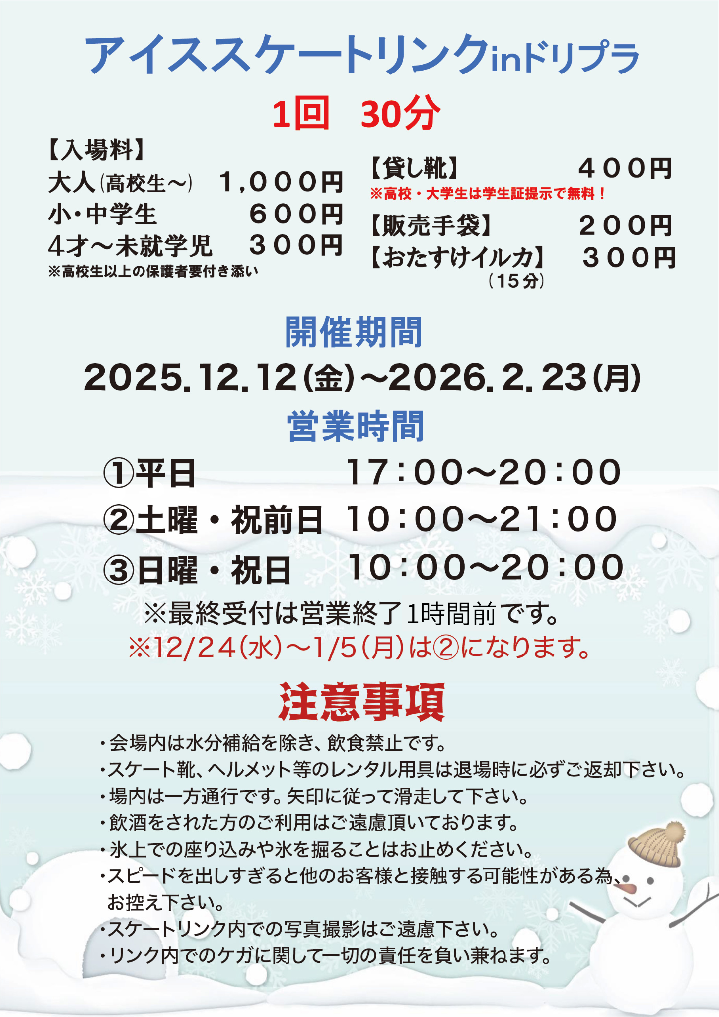 ※12月24日(水)~2026年1月5日(月)は、10時~21時までの営業となります。
