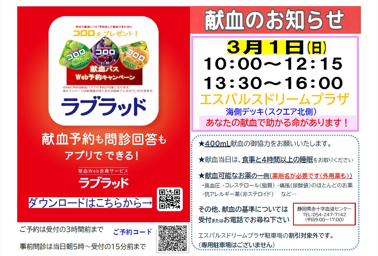 お問い合わせ:静岡県赤十字血液センター/054-247-7142(平日9:00-17:00)