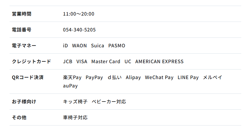 | 電話 | 054-351-5553 (団体受付:㈱のぶちゃん) |
