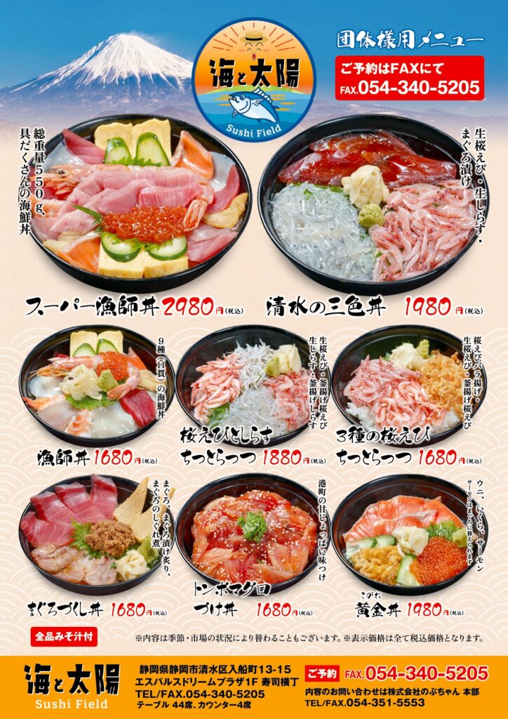 寿司処・清水ならでは!すし屋が多数集まる『清水すし横丁』では、マグロや桜エビ、しらすを中心としたお寿司を、団体のお客様にもご提供しております。
