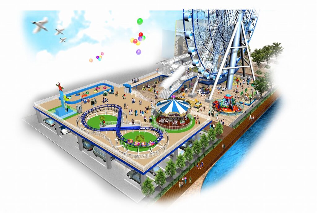 7つの大きな遊具と小さなお子さま向けのコイン式遊具が楽しめる海辺の遊園地。