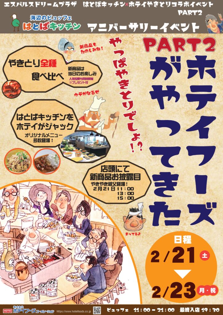 ホテイフーズ様 コラボのお知らせ レストラン・カフェ 2026.01.18 SHARE 店舗情報 店舗名 G-15 はとばキッチン[ビュッフェレストラン] 場所 SEA-side 1F G-15 はとばキッチン フロアガイド 閉じる SHARE