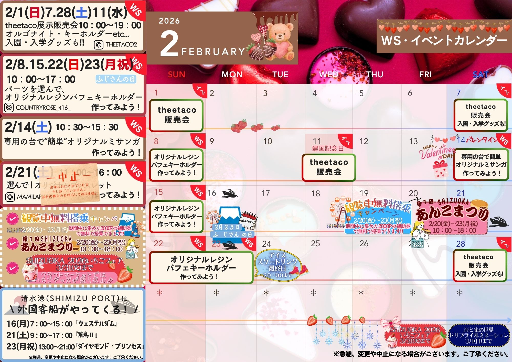 \2月🍫/店内イベント・ワークショップスケジュール