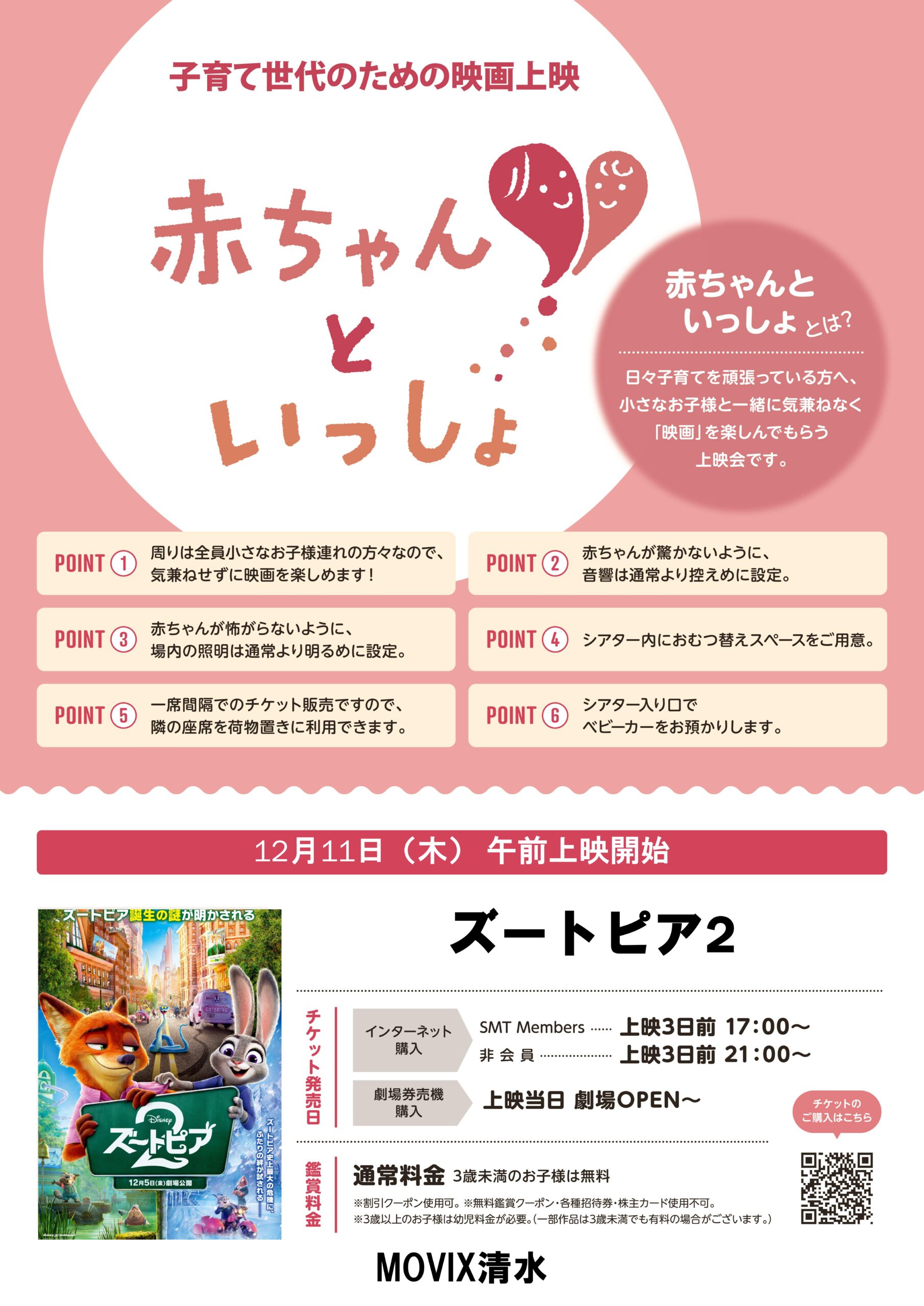 MOVIX清水 12月の「赤ちゃんといっしょ」上映会のお知らせ